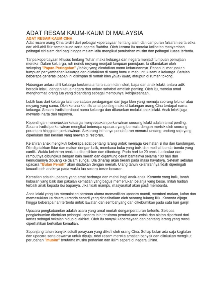 Adat istiadat adalah peraturan yang sentiasa dlpatuhi dan diamalkan dalam masyarakat malaysia terutamanya pada hari perayaan. Perpaduan kaum juga memainkan peranan dalam mengukuhkan lagi ekonomi negara dengan penglibatan semua kaum dalam kegiatan ekonomi. Aug 21, 2017 · malaysia: Namun begitu, penganut islam perlu berusaha untuk memaha mi realiti ke hidupan beragama masyarakat bukan melayu di mala ysia. Allah swt sangat menyukai orang yang sentiasa menjaga hubungan silaturahim dan akan mengurniakan pahala yang besar kepada mereka yang menjaga hubungan silaturahim itu.